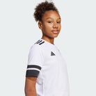 Faz parte da equipa com uma camisola adidas em tamanho júnior que é pura união no relvado. Com gola redonda canelada e as icónicas 3 riscas nos ombros, oferece simplicidade para poderes acrescentar pormenores da tua equipa. A dar tudo nos bastidores, o AEROREADY controla os níveis de humidade para estares sempre no teu melhor.