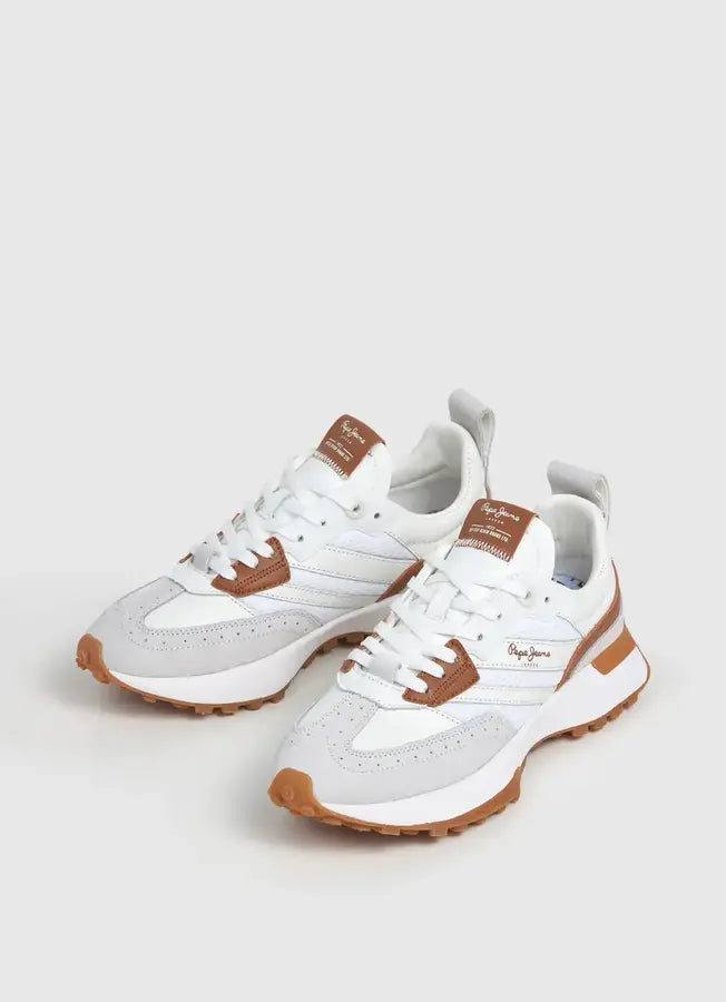 Sapatilhas Pepe Jeans Lucky Class W confecionadas em pele e materiais têxteis com detalhes em camurça na biqueira e no calcanhar, e entressola ultraleve em EVA.