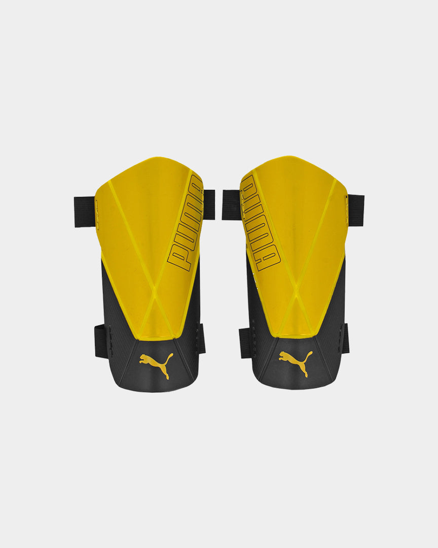 Unleash your inner football star with the latest shin guards from PUMA. Featuring a rigid, high-impact construction and perforated EVA support, these shin guards offer additional shock absorption. The adjustable two-strap construction ensures a secure fit for every player. Get ready to conquer the pitch!